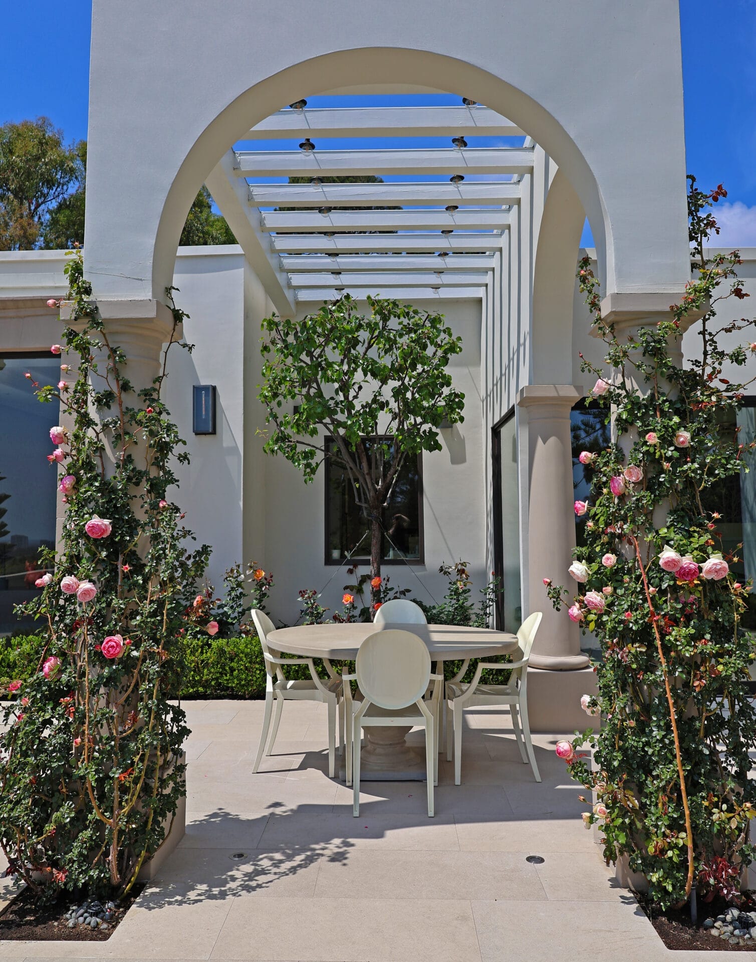 - Seasonal Flowering Beds: Westringia, lavender, roses, azaleas, and hydrangeas framed within structured planters